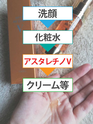 化粧水の後にアスタレチノVを1〜2プッシュして顔に塗るだけ。