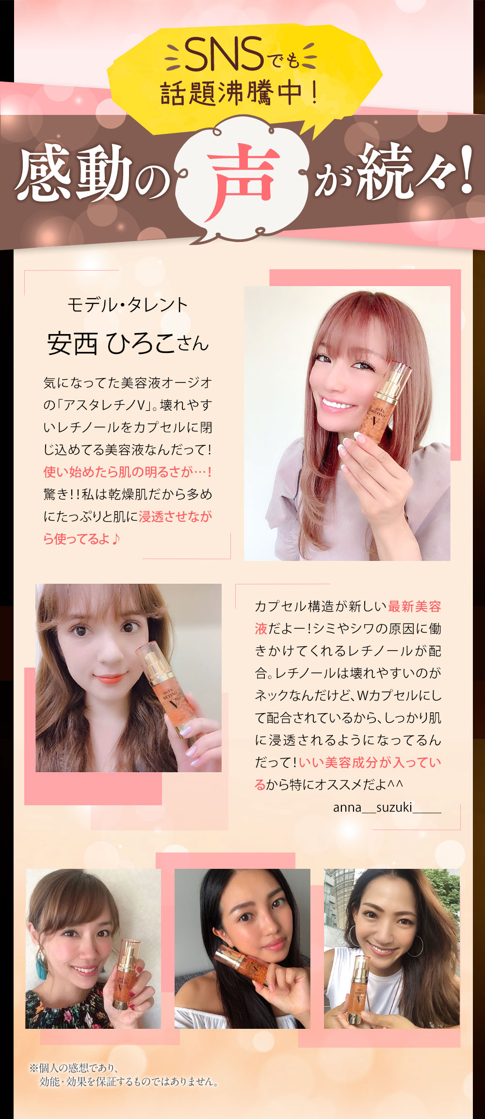 このWebキャンペーンがキッカケでしたが、アスタレチノVを使いエイジングケアを始められて本当に良かったと思います。